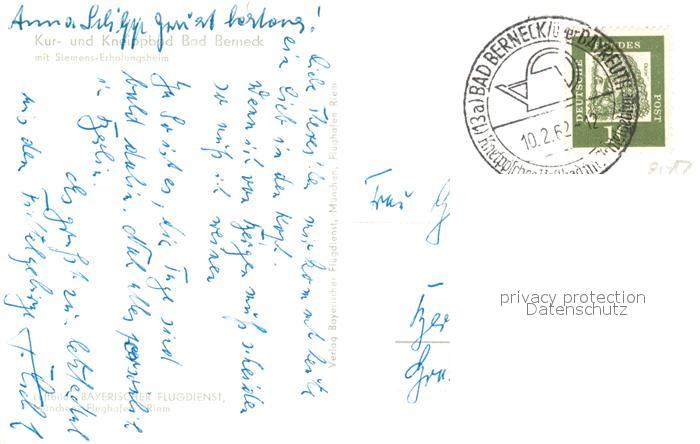 43347730 alte Postkarte Bad Berneck Fliegeraufnahme postalisch gelaufen Erhaltung siehe scans [WerneD78] KatCode: 11110009472116