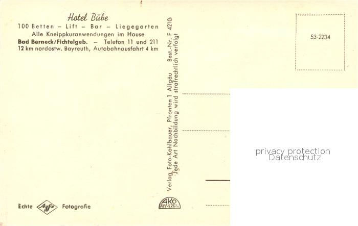 73096202 Bad Berneck Fliegeraufnahme Hotel Bube postalisch nicht gelaufen Erhaltung siehe scans [KathaD81] KatCode: 11110009472116