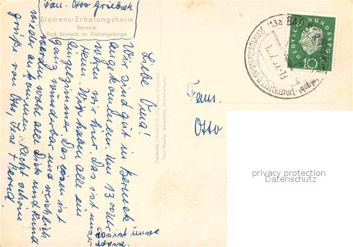 72793134 alte Postkarte Bad Berneck Fliegeraufnahme Siemens Erholungsheim postalisch gelaufen Erhaltung siehe scans [LiesaD40] KatCode: 11110009472116