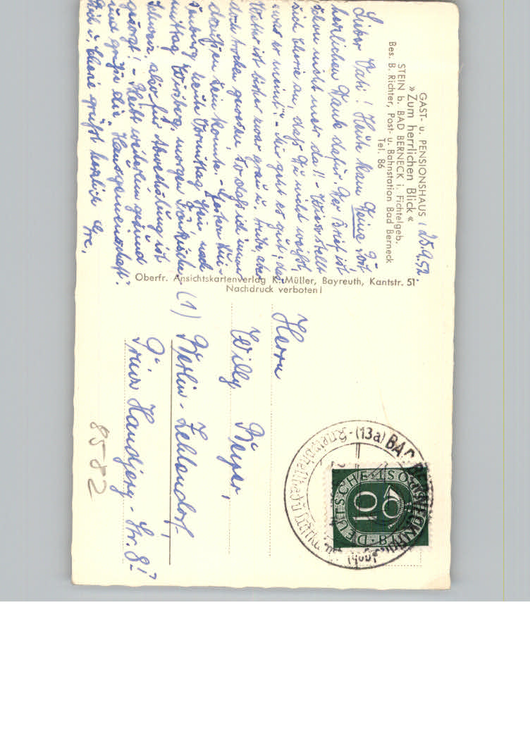 31162684 Bad Berneck Gasthaus – Pension Zum herrlichen Blick postalisch nicht gelaufen KatCode: 11110009472116