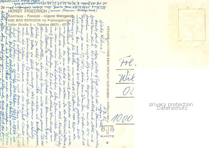 73653574 Bad Berneck Gasthof Metzgerei Horst Friedrich postalisch nicht gelaufen Erhaltung siehe scans [WerneD78] KatCode: 11110009472116