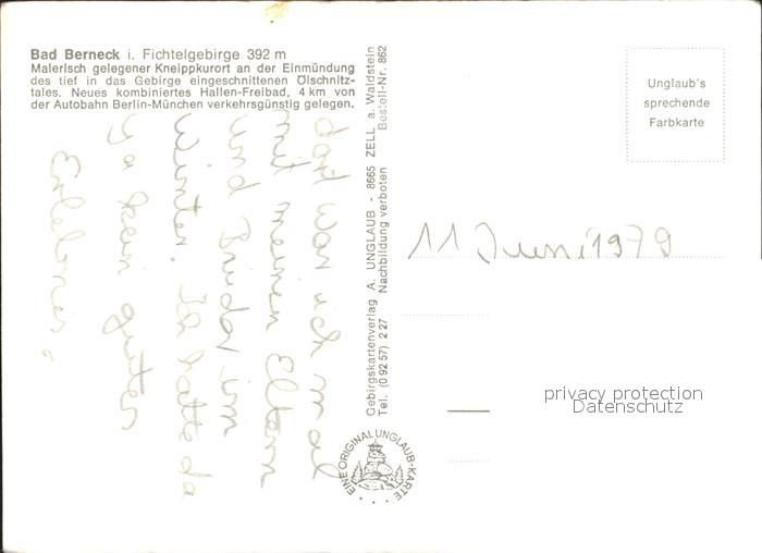 72135155 alte Postkarte Bad Berneck Hallenbad Schlossberg Autobahnkarte postalisch gelaufen Erhaltung siehe scans KatCode: 11110009472116