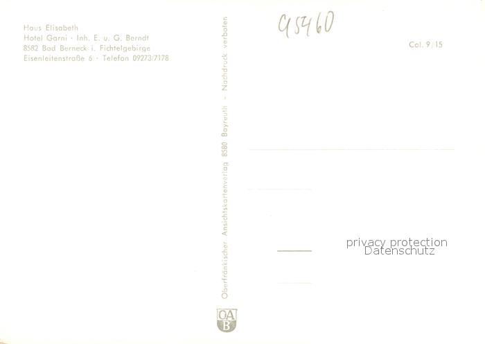 73108024 Bad Berneck Haus Elisabeth postalisch nicht gelaufen Erhaltung siehe scans [KathaD81] KatCode: 11110009472116