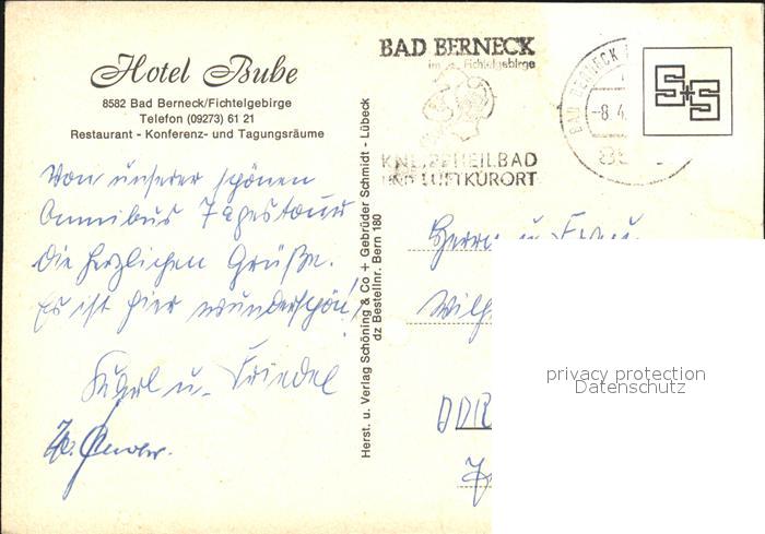 72515656 alte Postkarte Bad Berneck Hotel Bube postalisch gelaufen Erhaltung siehe scans KatCode: 11110009472116