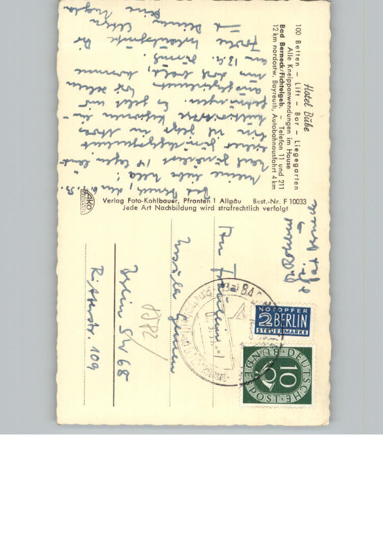 31162786 Bad Berneck Hotel Bube postalisch nicht gelaufen KatCode: 11110009472116