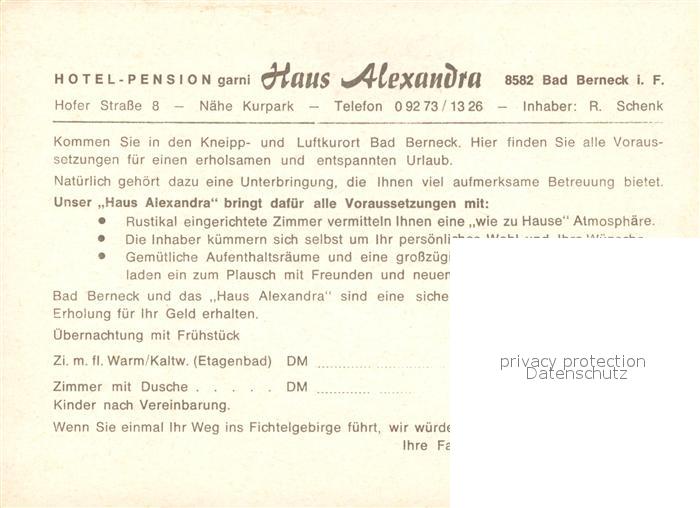 73542994 Bad Berneck Hotel Pension Haus Alexandra Stadtpanorama postalisch nicht gelaufen Werbekarte (keine Postkarte) Erhaltung siehe scans [FriedD77] KatCode: 11110009472116