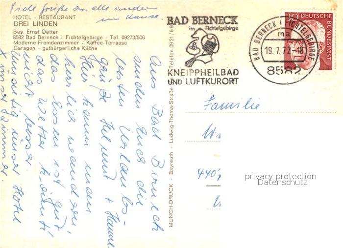 73011104 alte Postkarte Bad Berneck Hotel Restaurant Drei Linden postalisch gelaufen Erhaltung siehe scans [WerneD78] KatCode: 11110009472116