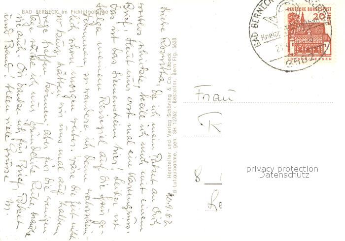 73686355 alte Postkarte Bad Berneck Kneipp-Heilbad Kurhaus Fliegeraufnahme postalisch gelaufen Erhaltung siehe scans [FriedD77] KatCode: 11110009472116