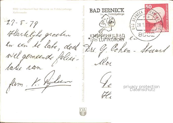 72574633 alte Postkarte Bad Berneck Kolonaden postalisch gelaufen Erhaltung siehe scans [KathaD79] KatCode: 11110009472116