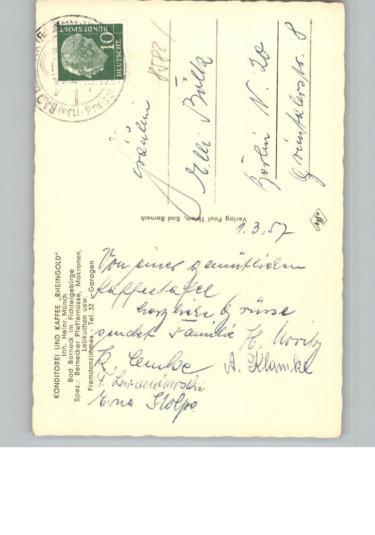 31163742 Bad Berneck Konditorei Cafe Rheingold postalisch nicht gelaufen KatCode: 11110009472116