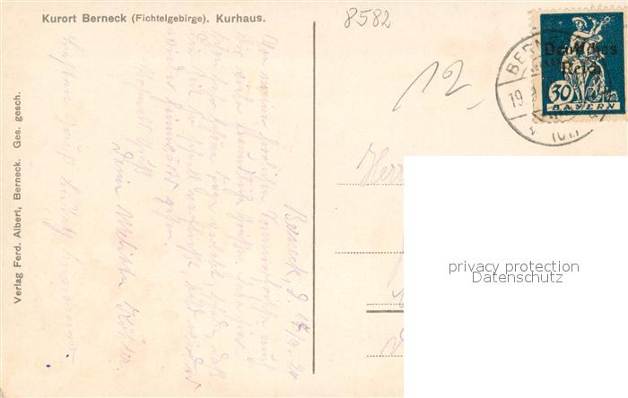 43039186 alte Postkarte Bad Berneck Kurhaus postalisch gelaufen Erhaltung siehe scans [FriedD77] KatCode: 11110009472116