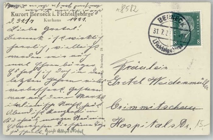 40235457 Bad Berneck Kurhaus Restaurant x 1931 KatCode 11110009472116