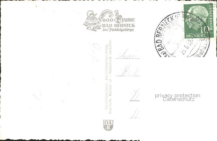 72246525 alte Postkarte Bad Berneck Kurhaus Waldlust Kolonnade Schlossturm mit Ruine postalisch gelaufen Erhaltung siehe scans KatCode: 11110009472116
