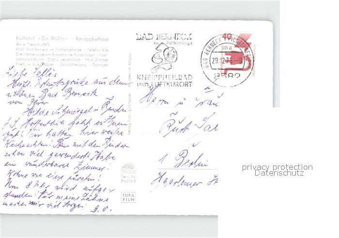 72300766 alte Postkarte Bad Berneck Kurhotel zur Muehle postalisch gelaufen Erhaltung siehe scans KatCode: 11110009472116