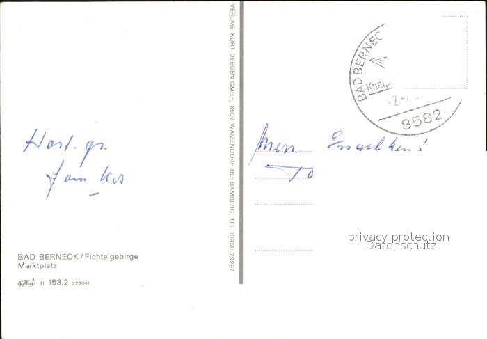 72431289 alte Postkarte Bad Berneck Marktplatz postalisch gelaufen Erhaltung siehe scans KatCode: 11110009472116