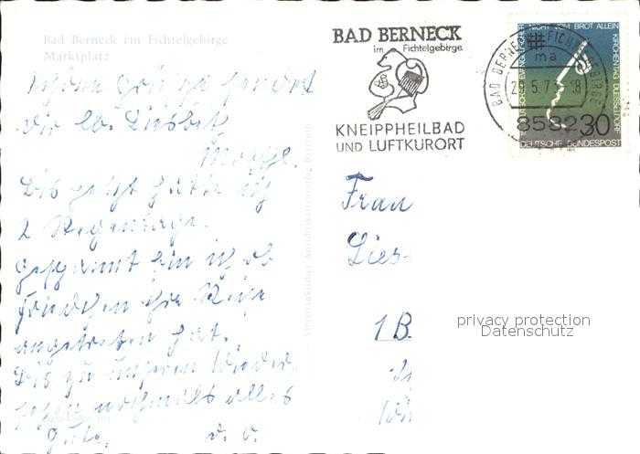 72034559 alte Postkarte Bad Berneck Marktplatz postalisch gelaufen Erhaltung siehe scans KatCode: 11110009472116