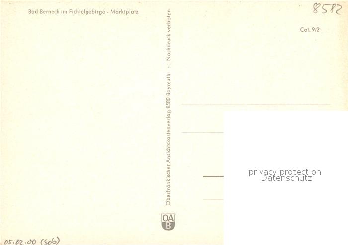 72958801 Bad Berneck Marktplatz postalisch nicht gelaufen Erhaltung siehe scans [FriedD77] KatCode: 11110009472116