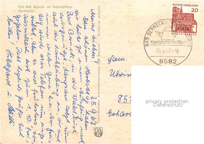 72764383 alte Postkarte Bad Berneck Marktplatz postalisch gelaufen Erhaltung siehe scans [AndreD76] KatCode: 11110009472116