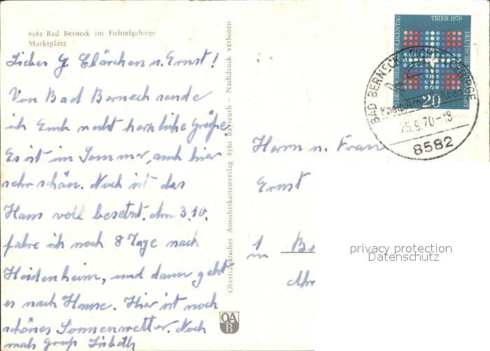 alte Postkarte Bad Berneck Marktplatz Brunnen postalisch gelaufen Erhaltung siehe scans