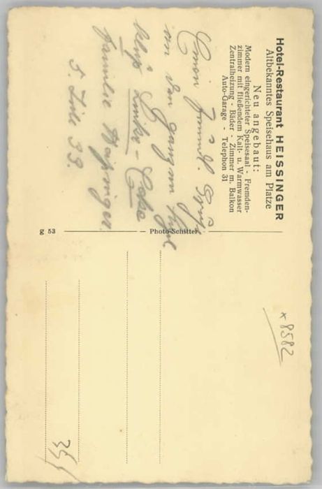 40235579 Bad Berneck Marktplatz Hotel Restaurant Heissinger * 1933 KatCode 11110009472116