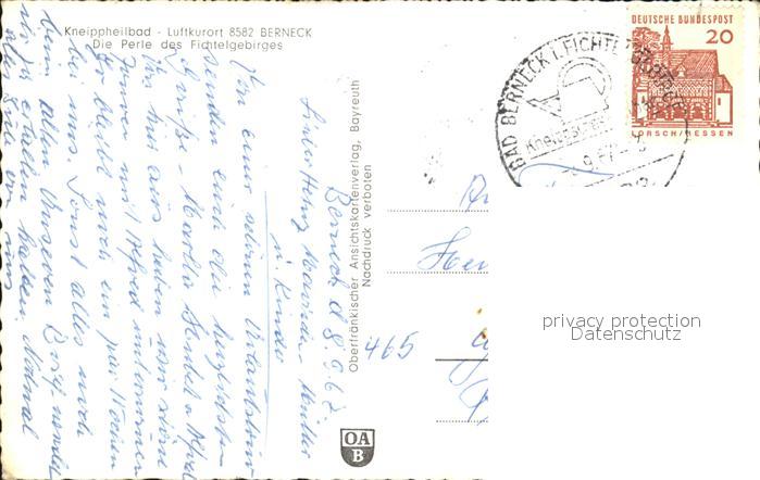 72466563 alte Postkarte Bad Berneck Ortsansicht mit Kirche Kneippheilbad Luftkurort postalisch gelaufen Erhaltung siehe scans KatCode: 11110009472116