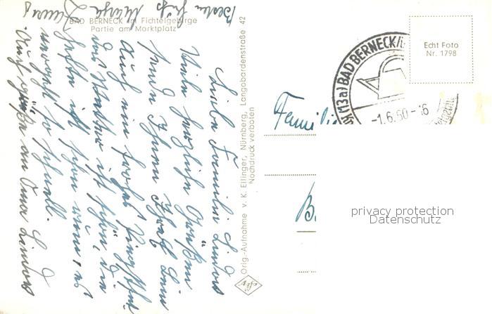 73758698 alte Postkarte Bad Berneck Partie am Marktplatz postalisch gelaufen Erhaltung siehe scans [FriedD77] KatCode: 11110009472116