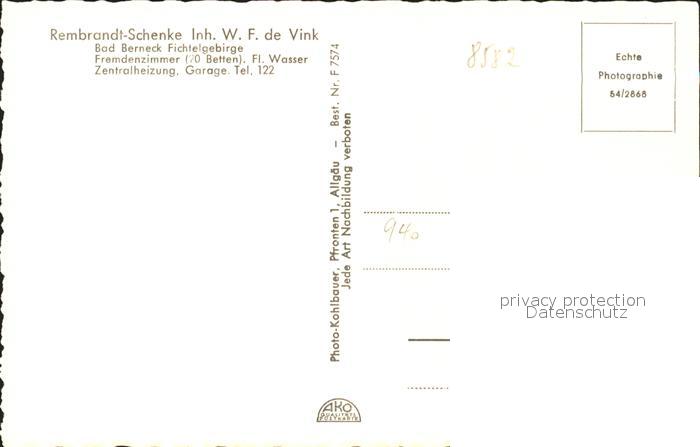 31704364 Bad Berneck Rembrandt-Schneke postalisch nicht gelaufen Erhaltung siehe scans KatCode: 11110009472116
