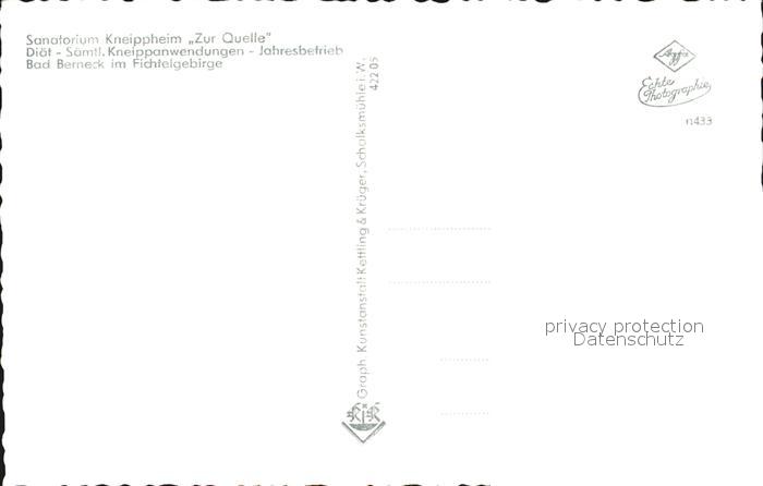 72550269 Bad Berneck Sanatorium Kneippheim Zur Quelle postalisch nicht gelaufen Erhaltung siehe scans [KathaD79] KatCode: 11110009472116
