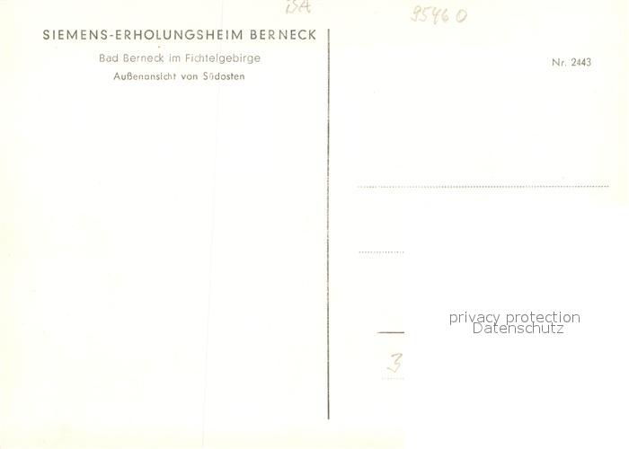 73648743 Bad Berneck Siemens Erholungsheim Berneck postalisch nicht gelaufen Erhaltung siehe scans [WerneD78] KatCode: 11110009472116