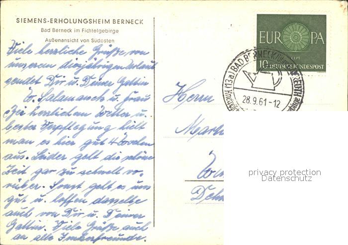 71907322 alte Postkarte Bad Berneck Siemens-Erholungsheim Berneck postalisch gelaufen Erhaltung siehe scans KatCode: 11110009472116