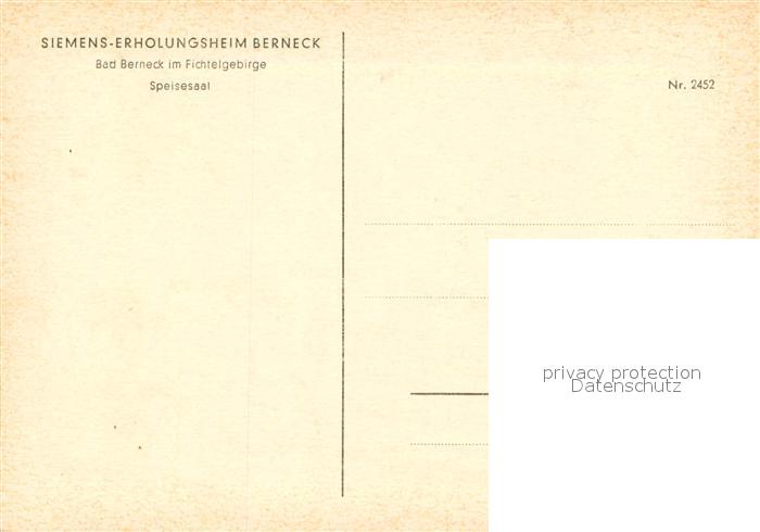 73648741 Bad Berneck Siemens Erholungsheim Berneck Speisesaal postalisch nicht gelaufen Erhaltung siehe scans [WerneD78] KatCode: 11110009472116