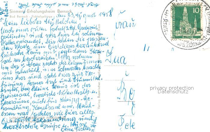 73646730 alte Postkarte Bad Berneck Siemens Erholungsheim Fliegeraufnahme postalisch gelaufen Erhaltung siehe scans [WerneD78] KatCode: 11110009472116