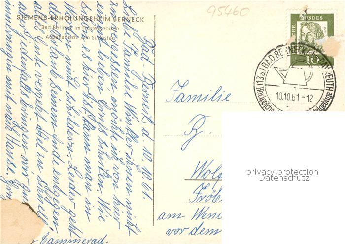 73865266 alte Postkarte Bad Berneck Siemens-Erholungsheim postalisch gelaufen Erhaltung siehe scans [FriedD77] KatCode: 11110009472116