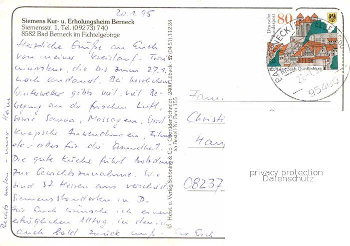 72654613 alte Postkarte Bad Berneck Siemens Kur und Erholungsheim Berneck Springbrunnen Hauptstrasse Burg postalisch gelaufen Erhaltung siehe scans [FriedD77] KatCode: 11110009472116