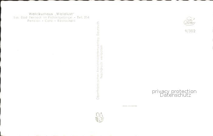 72592259 Bad Berneck Waldkurhaus Waldlust postalisch nicht gelaufen Erhaltung siehe scans [AndreD76] KatCode: 11110009472116