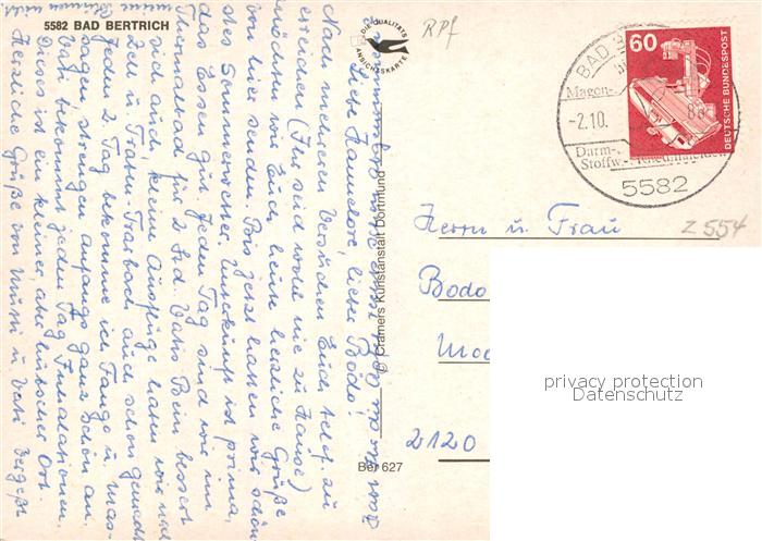 73123466 alte Postkarte Bad Bertrich postalisch gelaufen Erhaltung siehe scans [PaolaD17] KatCode: 11110007135501