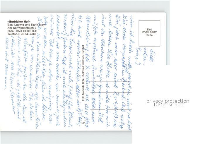72015474 Bad Bertrich Bertricher Hof postalisch nicht gelaufen Erhaltung siehe scans KatCode: 11110007135501
