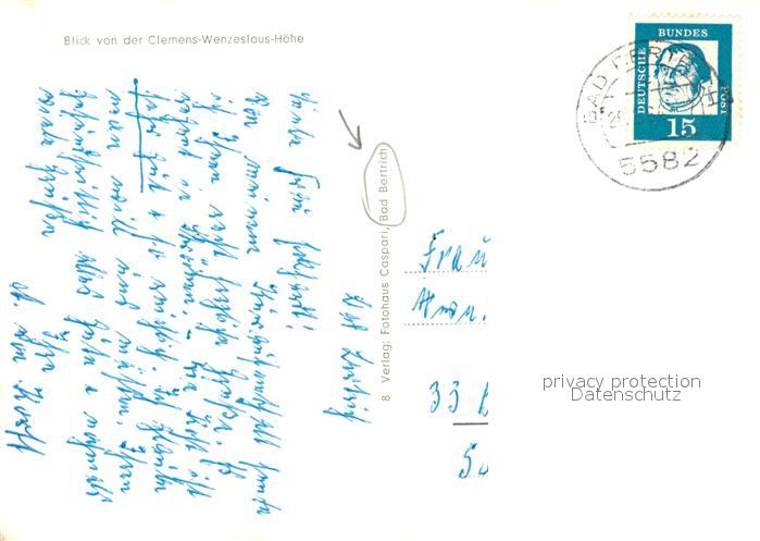 73137824 alte Postkarte Bad Bertrich Blick von der Clemens-Wenzeslaus-Hoehe postalisch gelaufen Erhaltung siehe scans [NatalD47] KatCode: 11110007135501