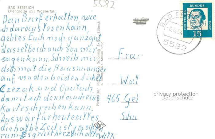 73695756 alte Postkarte Bad Bertrich Elfengrotte mit Wasserfall postalisch gelaufen Erhaltung siehe scans [LiesaD40] KatCode: 11110007135501