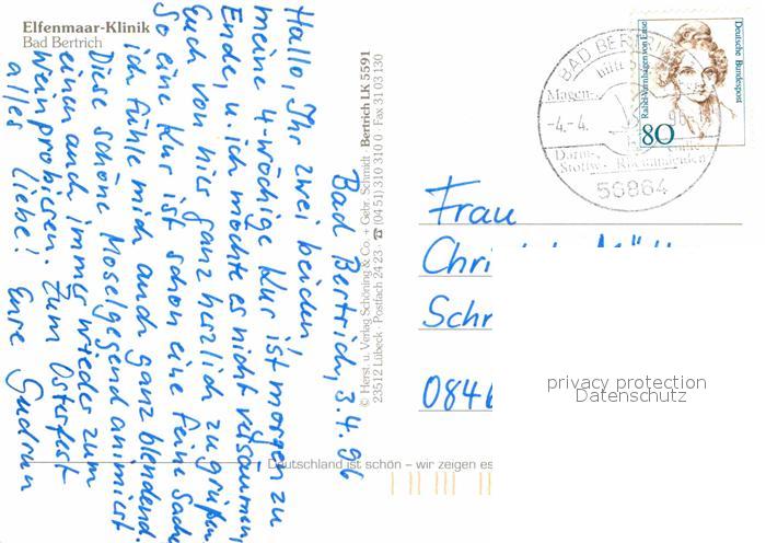 72725632 alte Postkarte Bad Bertrich Elfenmaar-Klinik postalisch gelaufen Erhaltung siehe scans [LiesaD40] KatCode: 11110007135501