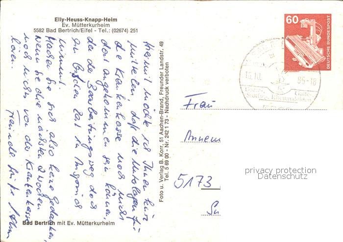 71894391 alte Postkarte Bad Bertrich Elly-Heuss-Knapp-Heim Evangelischer Muetterkurheim postalisch gelaufen Erhaltung siehe scans KatCode: 11110007135501