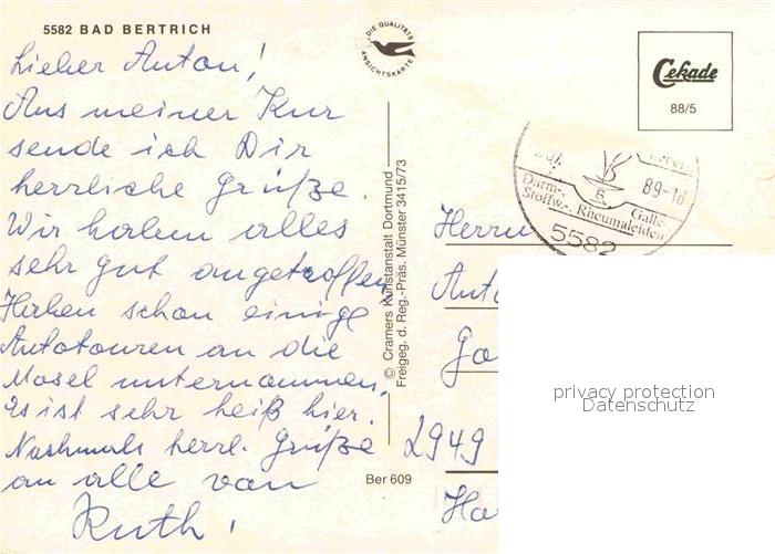 72861796 alte Postkarte Bad Bertrich Fliegeraufnahme postalisch gelaufen Erhaltung siehe scans [FriedD77] KatCode: 11110007135501