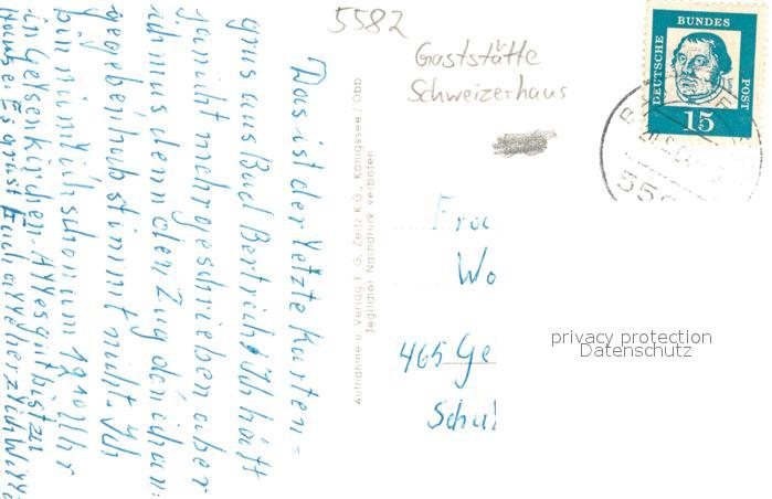 73695757 alte Postkarte Bad Bertrich Gaststaette Schweizerhaus postalisch gelaufen Erhaltung siehe scans [LiesaD40] KatCode: 11110007135501