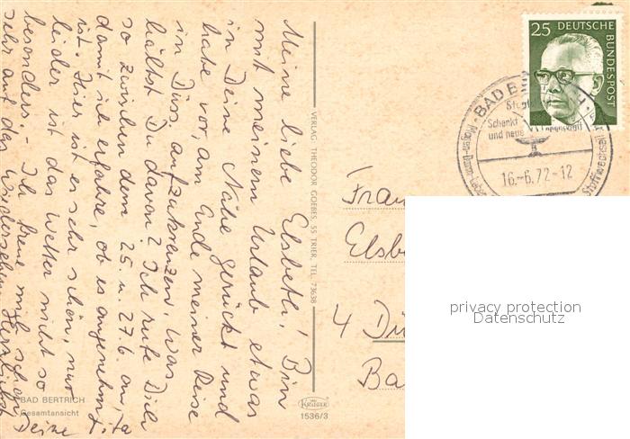 72954662 alte Postkarte Bad Bertrich Gesamtansicht postalisch gelaufen Erhaltung siehe scans [PaolaD17] KatCode: 11110007135501