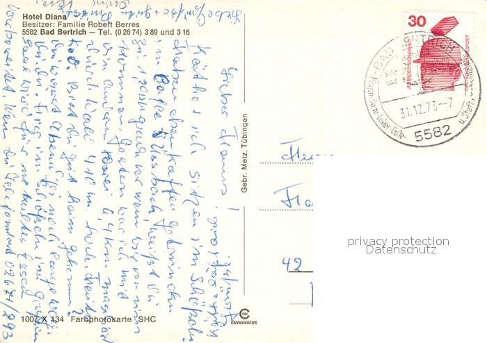 72972790 alte Postkarte Bad Bertrich Hotel Diana postalisch gelaufen Erhaltung siehe scans [FriedD77] KatCode: 11110007135501