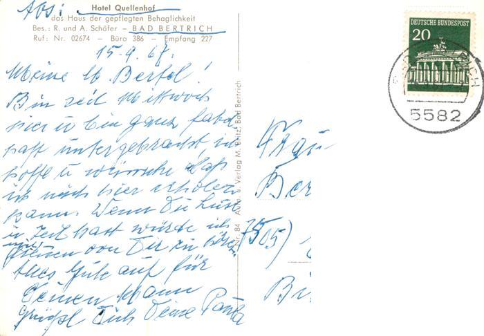 73907394 alte Postkarte Bad Bertrich Hotel Quellenhof postalisch gelaufen Erhaltung siehe scans [WerneD78] KatCode: 11110007135501