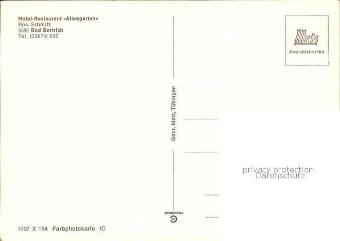 72478763 Bad Bertrich Hotel Restaurant Alleegarten postalisch nicht gelaufen Erhaltung siehe scans KatCode: 11110007135501