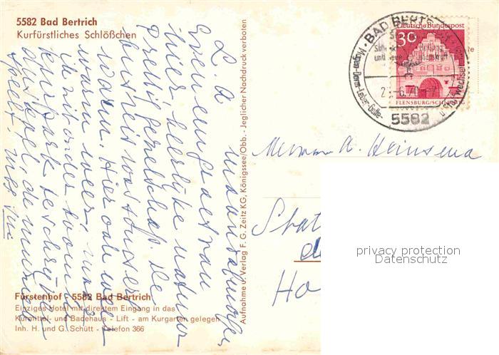 72855761 alte Postkarte Bad Bertrich Kurfuerstliches Schloesschen postalisch gelaufen Erhaltung siehe scans [AndreD76] KatCode: 11110007135501
