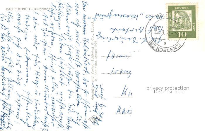 73317913 alte Postkarte Bad Bertrich Kurgarten postalisch gelaufen Erhaltung siehe scans [KathaD81] KatCode: 11110007135501
