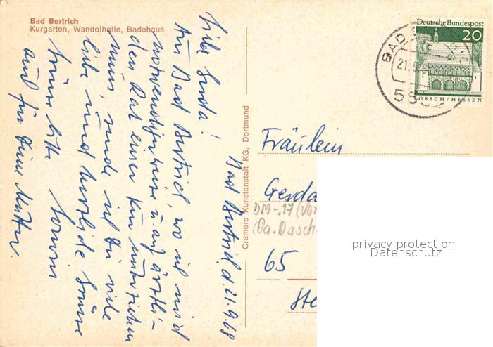 72757954 alte Postkarte Bad Bertrich Kurgarten Wandelhalle Badehaus postalisch gelaufen Erhaltung siehe scans [NatalD47] KatCode: 11110007135501